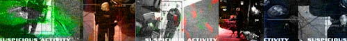 Also featured are clips from “Urban Junglism” a video depicting the artist from the perspective of tracking surveillance cameras as they walk the streets of the East Village, going to the store, walking the dogs etc. surrounded by graphic boxes and text tracking and interpreting their movements, with “Alert” and “Suspicious Activity” messages popping up next to the tracking boxes.